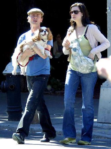 Liv, Roy and Neal the dog taking a walk, New York, June 12th 2004